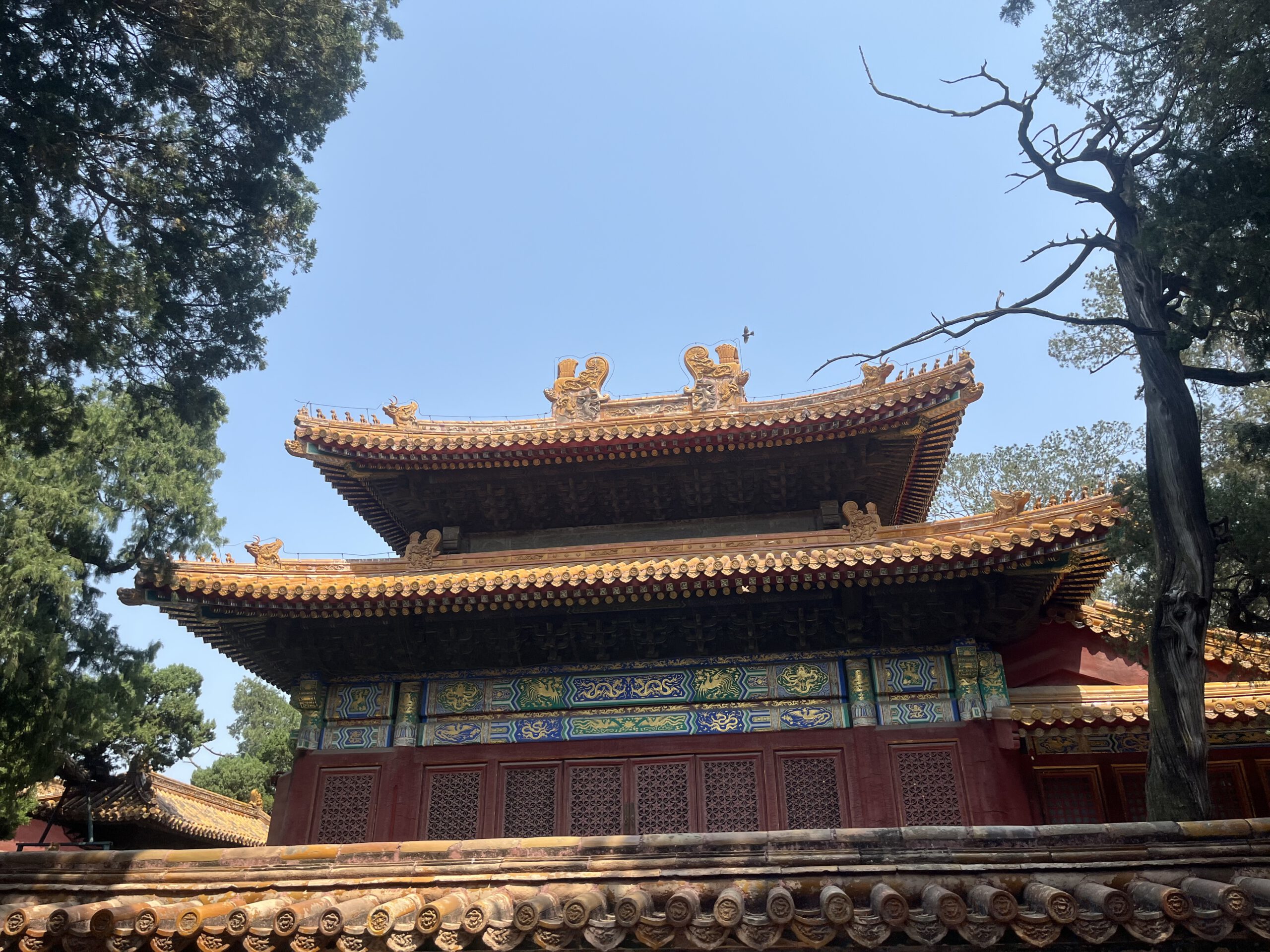 Für den nächsten Tag hatte ich im Internet Tickets für die verbotene Stadt bestellt. Die waren immer sehr schnell ausverkauft. Das entsprach auch dem Andrang vor Ort. Allerdings waren statt der von mir erwarteten vielen Gruppen mit westlichen Touris vor allem viele Gruppen mit Schulkindern da. Zunächst war es aber erstmal eine Herausforderung, den Eingang zu finden und die Kasse, an der ich mein Ticket noch bezahlen musste. Mehrere Polizeikontrollen und Absperrungen machten es nicht einfacher, aber ich bin einfach den verkleideten Menschen gefolgt. Letztendlich habe ich die Kasse und den Eingang gefunden und auch die Sicherheitskontrolle am Eingang erfolgreich gemeistert. Sogar die Ausgabe für die Audioguides habe ich gefunden. Nur die Orientierung in diesem großen Gebiet und Menschengewimmel war etwas schwierig. Da hat auch der Verweis des Audioguides auf den Plan auf der Rückseite nicht geholfen. Bei ca. 10×15 cm für den Gesamtplan, konnte nicht einmal mein Handy mehr die Schrift richtig erkennen. Aber irgendwann hat man dann auch genug von all den Palästen, auch wenn man noch nicht unbedingt alles gesehen hat.