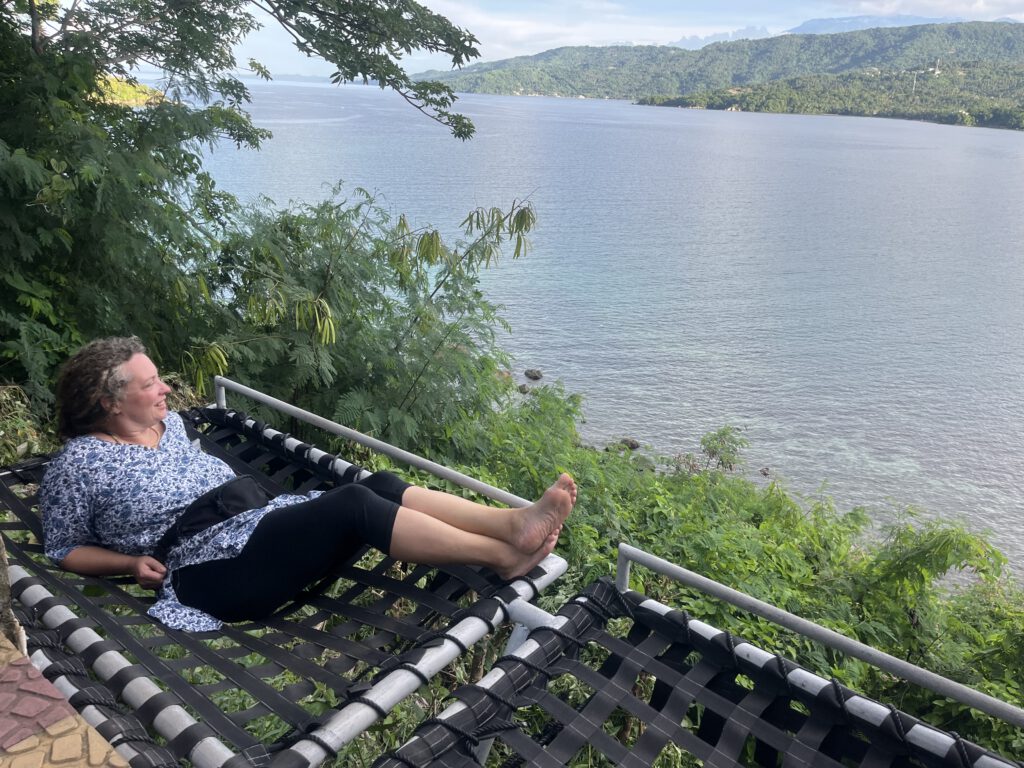 Von Manila aus kommt man in ca. 2 Stunden vom Busbahnhof zum Fährhafen Batangas und dann mit einem der Boote nach Balatero. Das Yogastudio einschließlich Unterkunft in Puerto Galero liegt direkt an der Steilküste mit wunderbarem Ausblick und einem Strand jeweils rechts und links vom Grundstück (https://kalyaniyoga-puertogalera.com/#frontpage). In der Umgebung soll eins der besten Tauchreviere sein und Schnorcheln kann man auch. Außerdem kann man direkt vom Balkon Glühwürmchen und Flughunde und ganz viele Ameisen beobachten und die fünf Hunde der Besitzer streicheln. Ich hatte sogar eine kleine Krabbe unter meinem Bett.